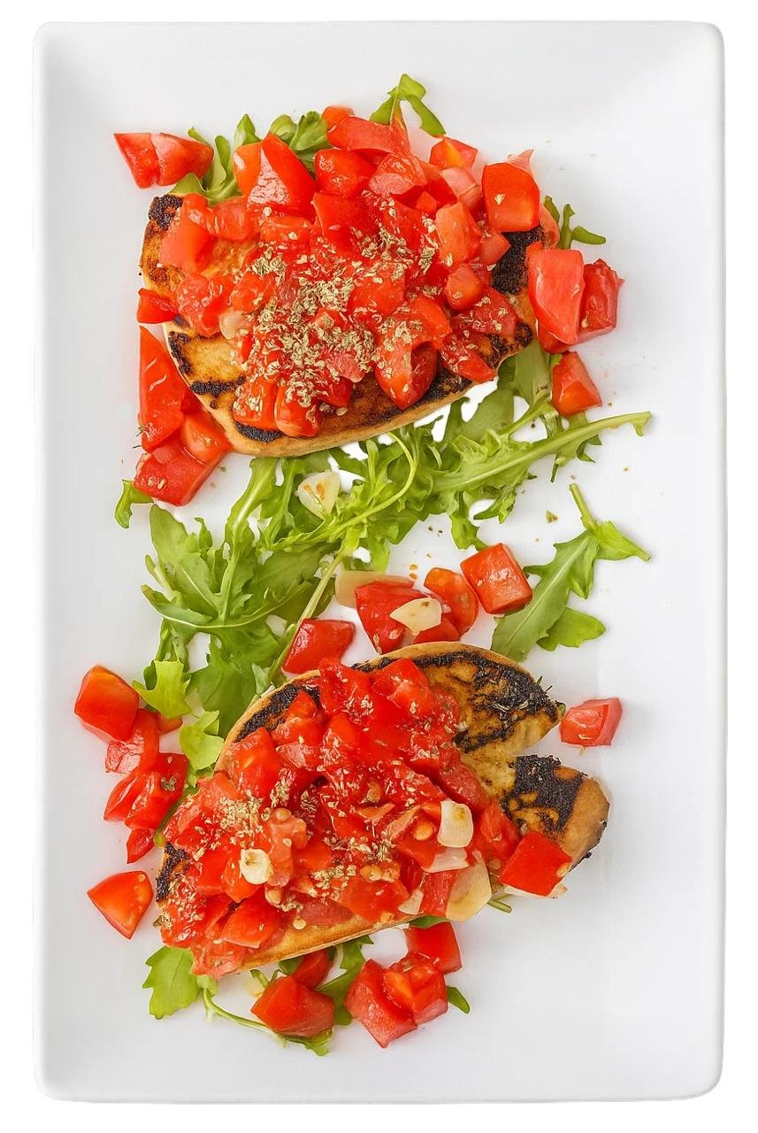 Knuspriges geröstetes Brot, belegt mit saftigen frischen Tomatenwürfeln, aromatischem Knoblauch und duftendem Basilikum. Eine einfache, aber geschmackvolle Vorspeise, die die Frische und Authentizität der italienischen Tradition verkörpert.