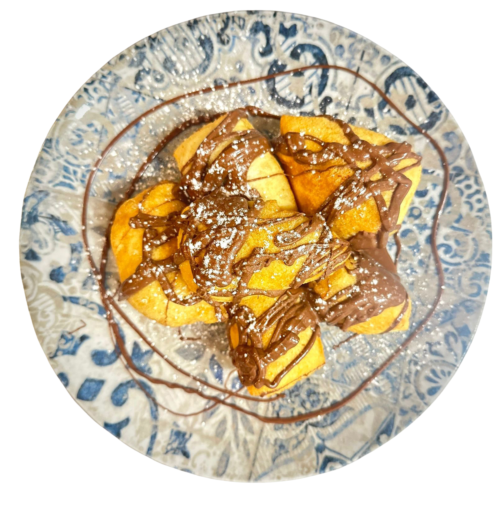 Eine köstliche Versuchung aus luftigem Pizzateig, goldbraun und knusprig frittiert. Im Inneren verbirgt sich ein warmer, cremiger Kern aus Nutella, der beim ersten Bissen sein unwiderstehliches Aroma entfaltet. Umhüllt von einem Hauch geschmolzener Schokolade – ein Feuerwerk der Süße, das begeistert.