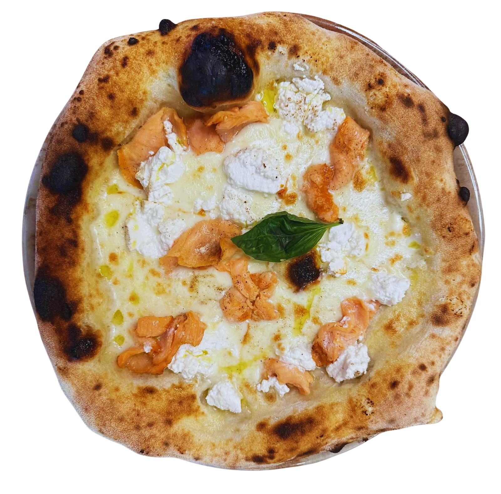 Die Pizza Pulcinella verführt mit ihrer zarten Note: samtiger Fiordilatte und frische Ricotta verschmelzen zu einer cremigen Basis.