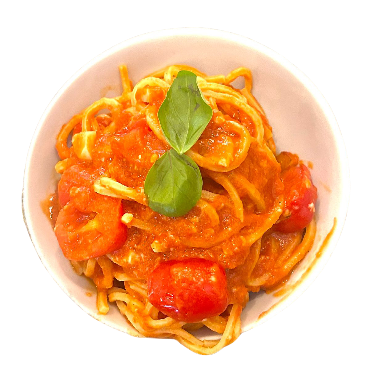 Die Spaghetti Scarpariello sind eine Geschmacksexplosion aus Neapel: mit Piennolo-Tomatensauce, frischem Basilikum und einer großzügigen Portion geriebenem Parmesan und Pecorino.