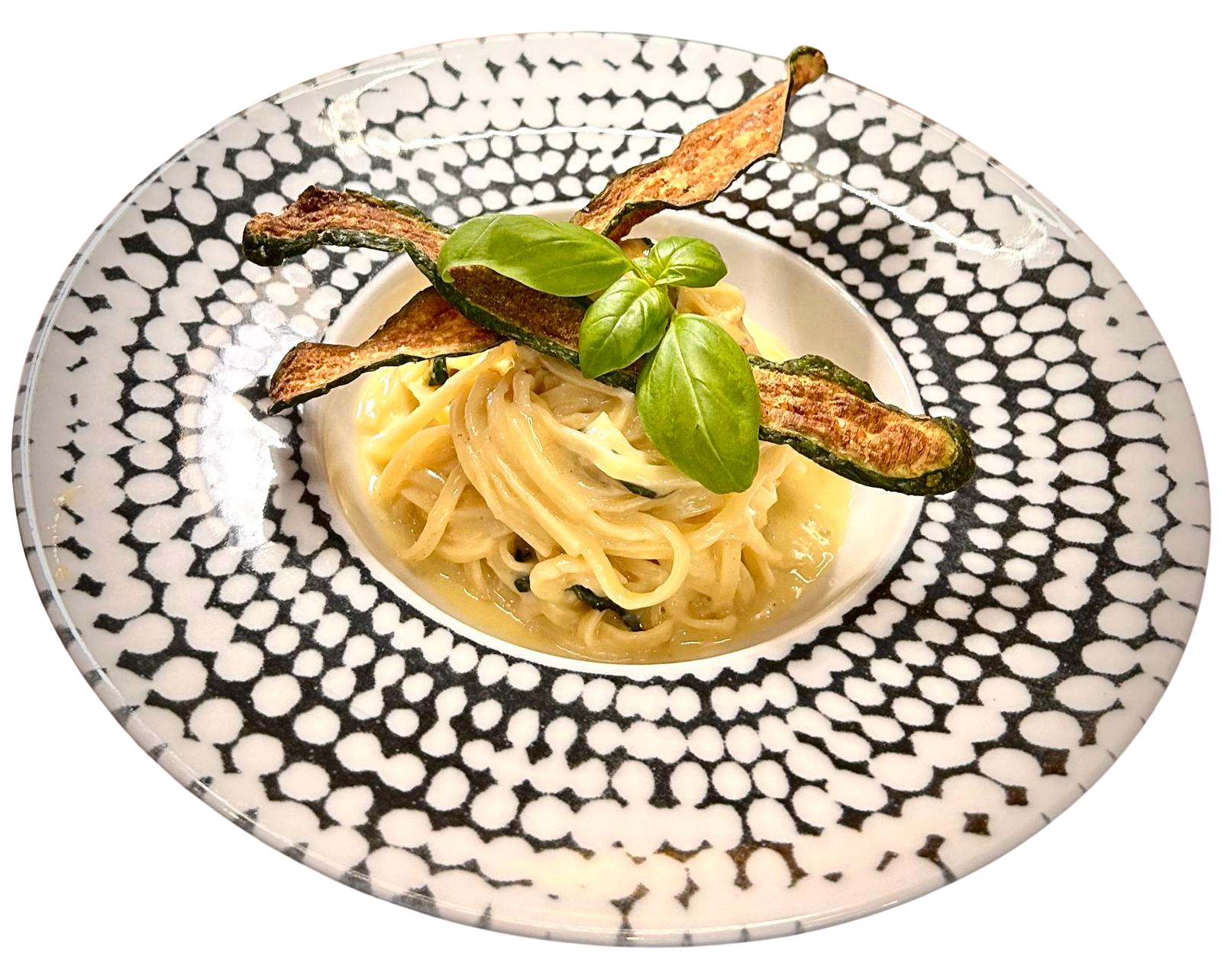 Die Tagliolini alla Nerano sind ein cremiges Meisterwerk der neapolitanischen Küche: sautierte Zucchini, geschmolzener Parmigiano, Pecorino und Provolone.