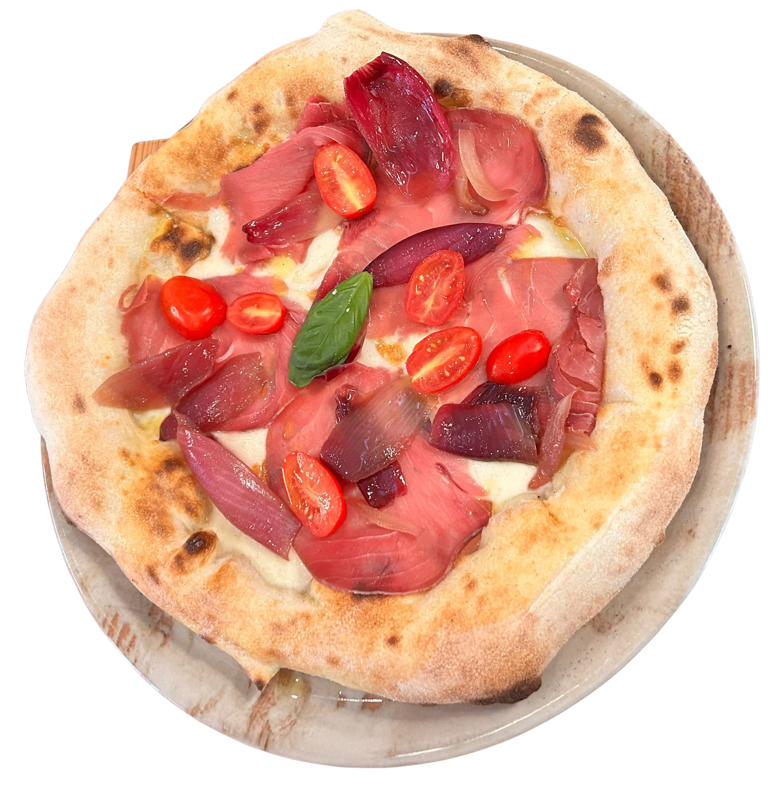 Die Pizza Totò ist eine harmonische Komposition aus erlesenen Zutaten und raffiniertem Geschmack: